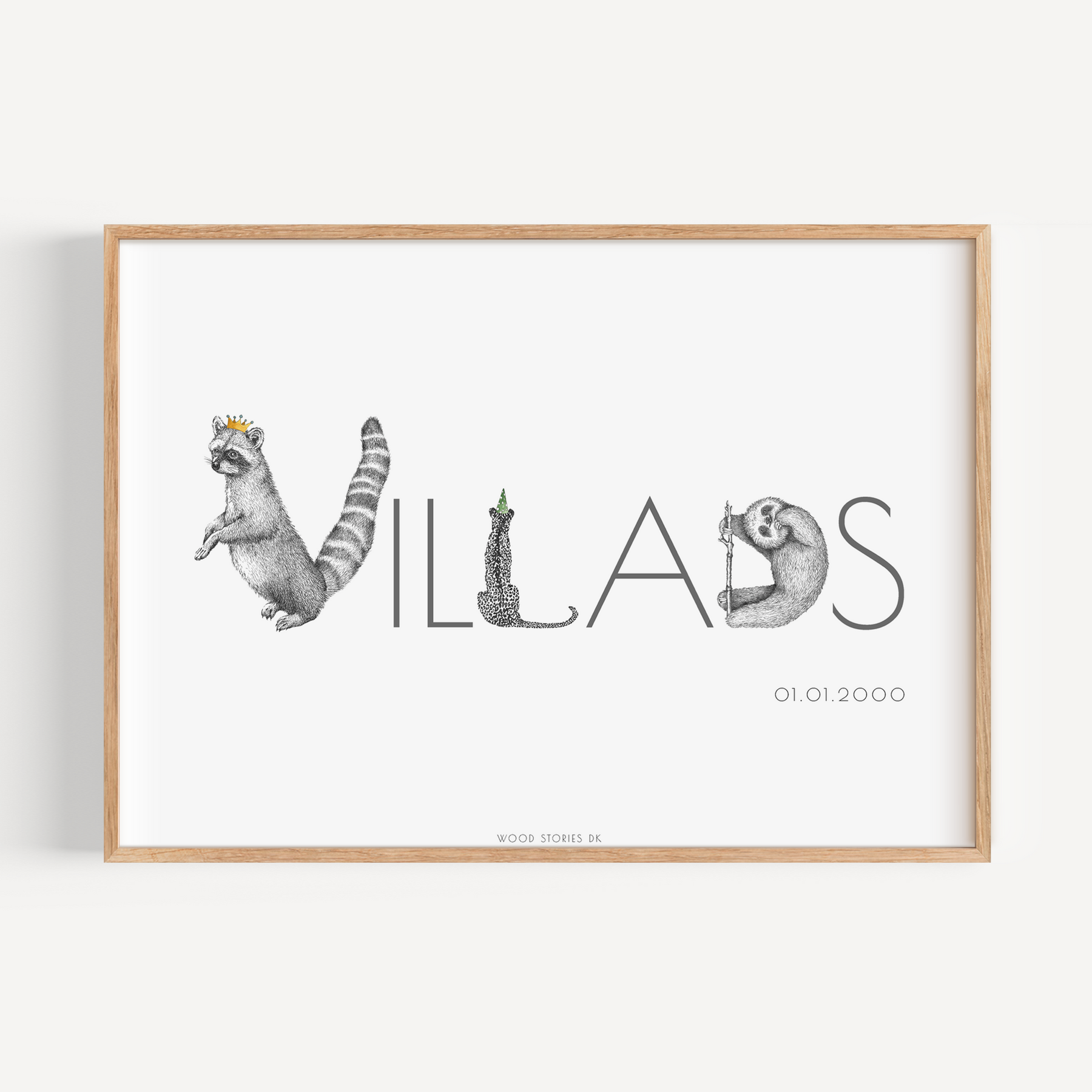 Navneplakaterne fra WOOD STORIES er de eneste af sin art på markedet, idet dyre-illustrationerne er udformet som bogstaver. Blandingen mellem dyre-bogstaverne og almindelige bogstaver giver plakaten et mere let og grafisk udtryk. Herved får du en unik og personlig navneplakat, der utvivlsomt tilfører både æstetik, sjov og læring på børneværelset. Barnets fødselsdato kan tilføjes efter ønske.