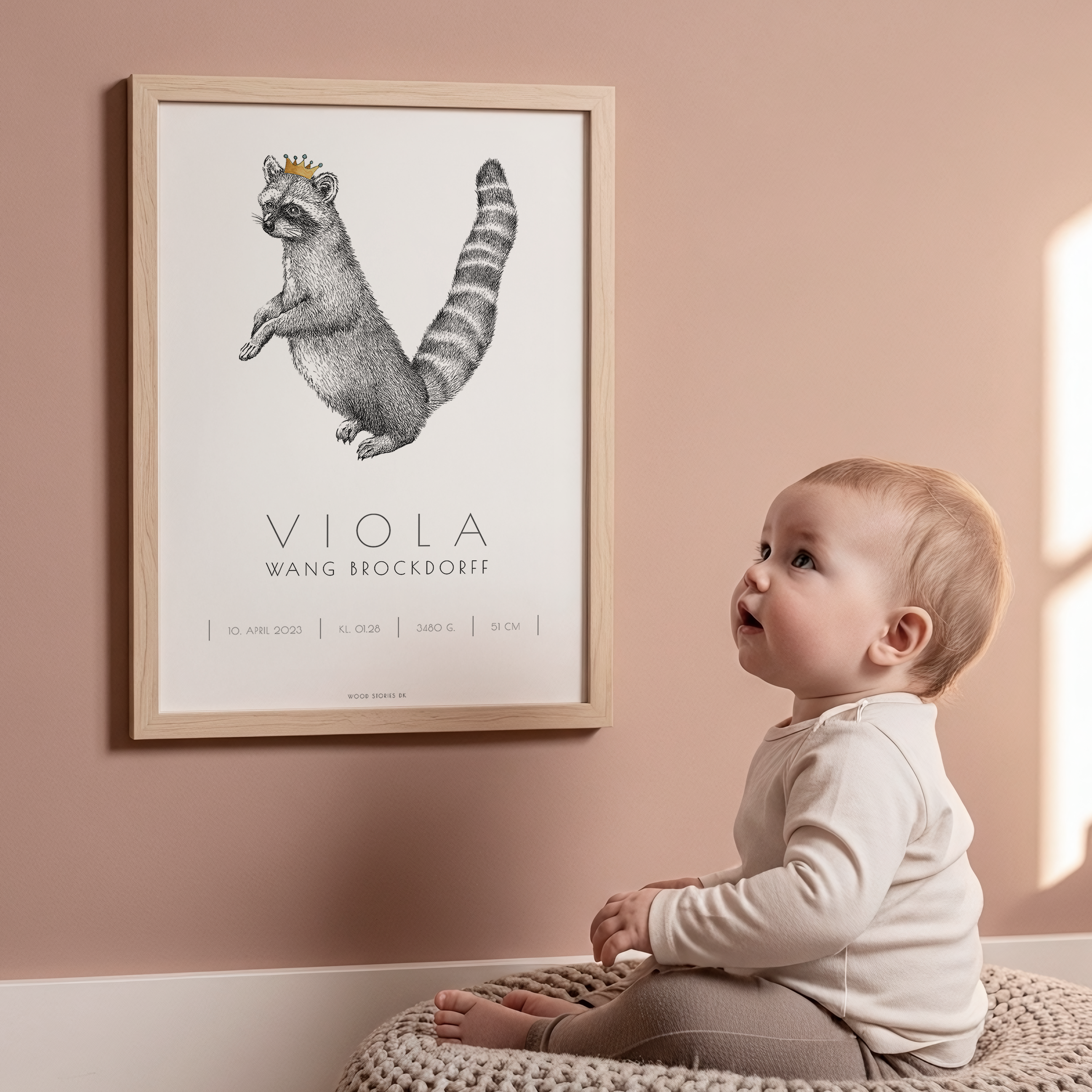 En fødselsplakat er en personlig måde at forevige barnets navn, fødselsdato, vægt, længde og klokkeslæt. Et varigt minde, der passer smukt ind på børneværelset.