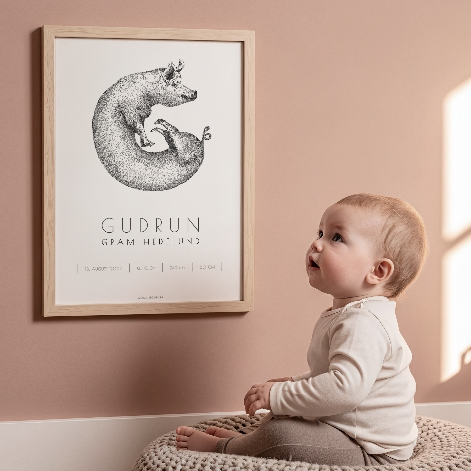 Forevig dit barns fødselsdata med en unik håndtegnet fødselsplakat. Den personlige fødselsplakat er også en oplagt dåbs- eller barselsgave og vil med sikkerhed skabe stor glæde hos modtageren.