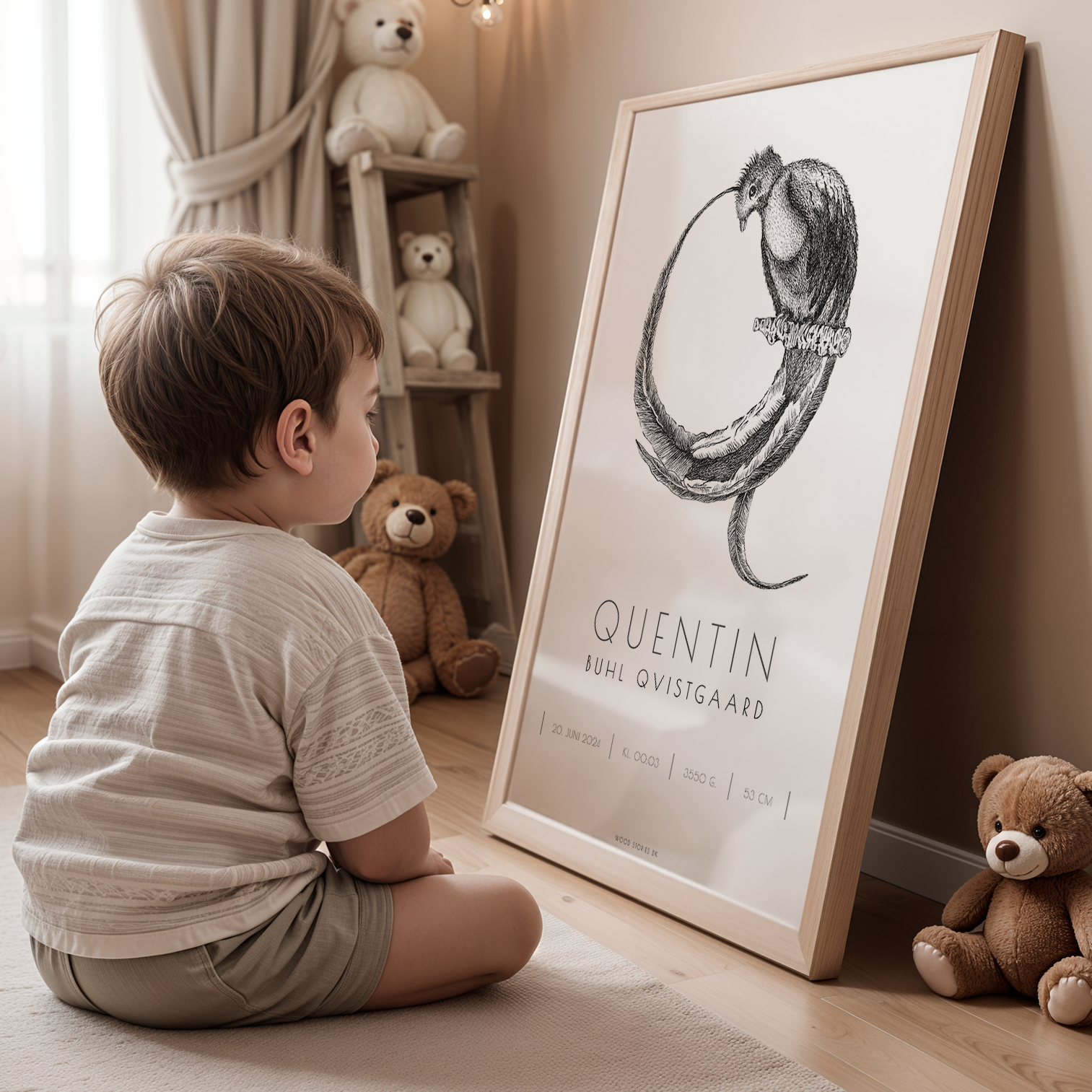 Forevig dit barns fødselsdata med en unik håndtegnet fødselsplakat. Den personlige fødselsplakat er også en oplagt dåbs- eller barselsgave og vil med sikkerhed skabe stor glæde hos modtageren.