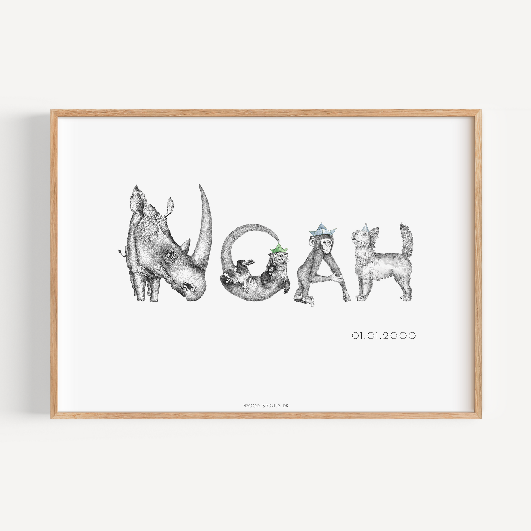 Navneplakaterne fra WOOD STORIES er de eneste af sin art på markedet, idet alle bogstaverne er udformet som dyr, der alle imiterer deres forbogstav. Herved får du en unik og personlig navneplakat, der utvivlsomt tilfører både æstetik, sjov og læring på børneværelset. Barnets fødselsdato kan tilføjes efter ønske.