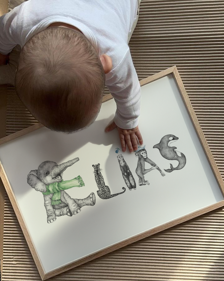 I denne periode begynder barnet ikke kun at genkende former, men også at forbinde dem med mening. Dyrene på Wood Stories’ navneplakater bliver visuelle holdepunkter, som barnet vender tilbage til igen og igen. Barnet begynder at genkende de enkelte dyr og kan gradvist koble dem til kendte lyde og ord, som fx dyrelyde, hvilket understøtter både visuel og tidlig sproglig udvikling.