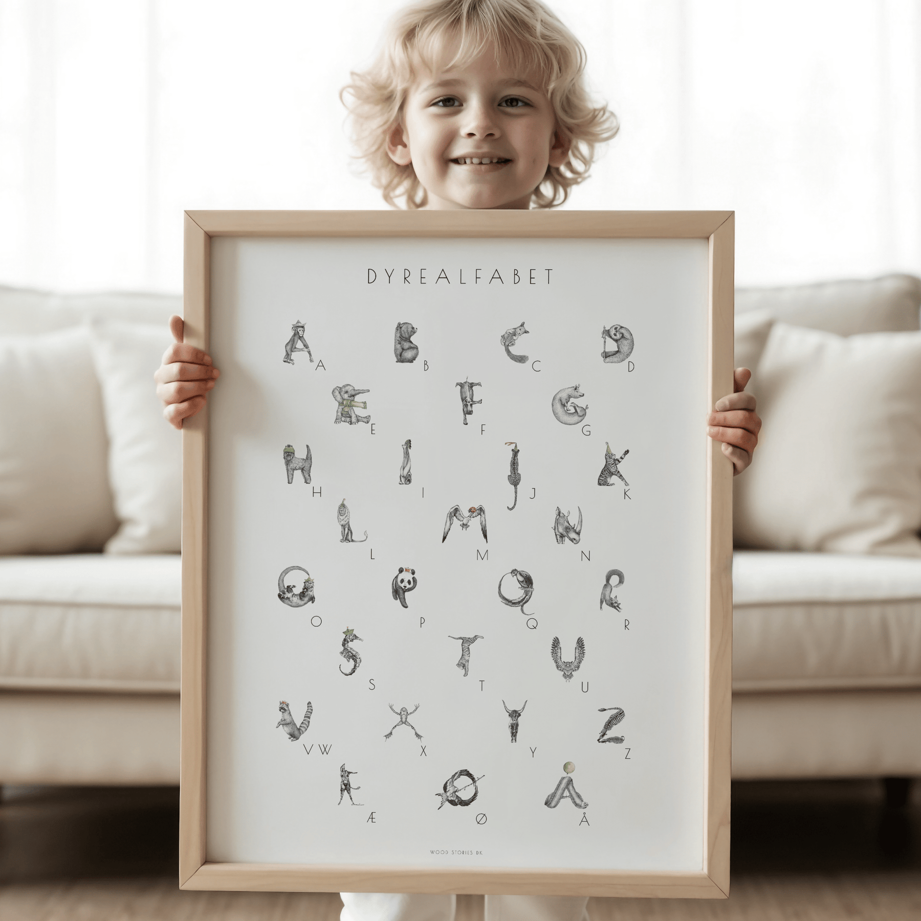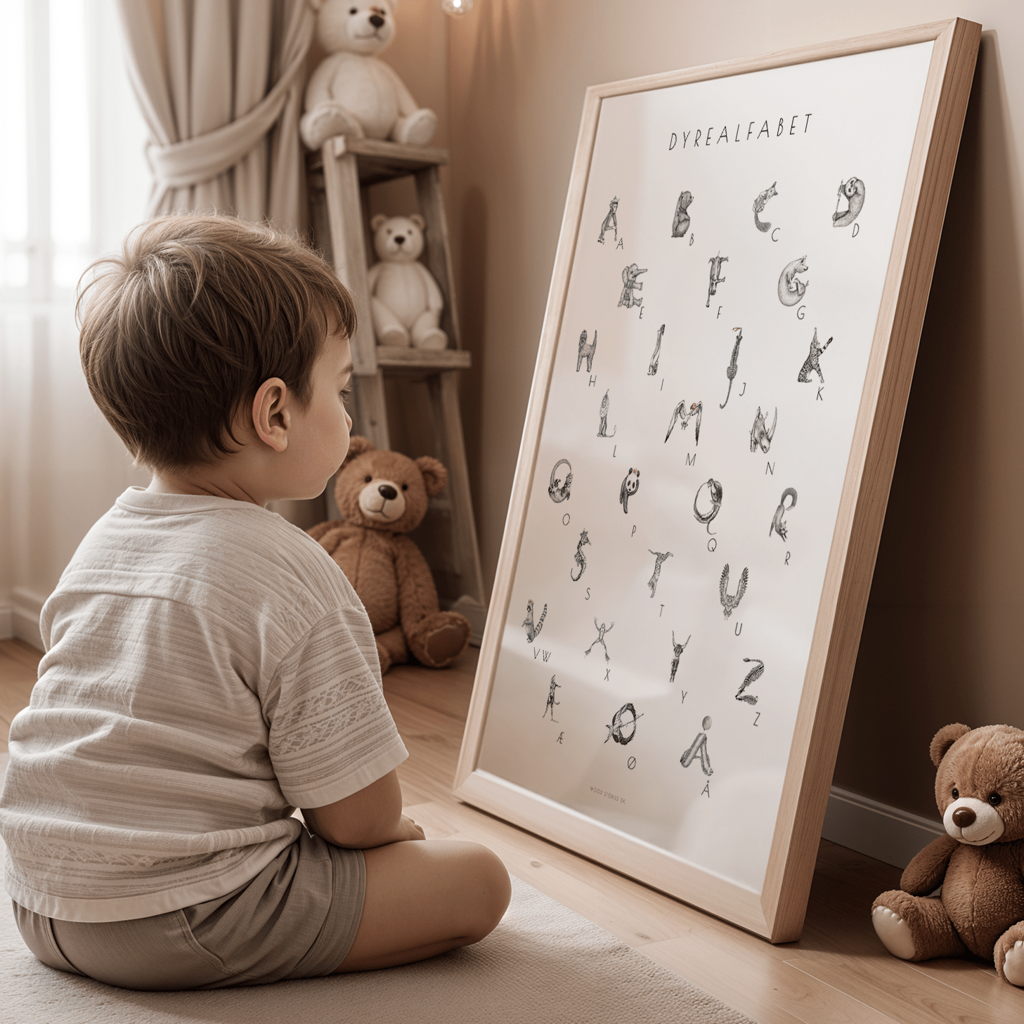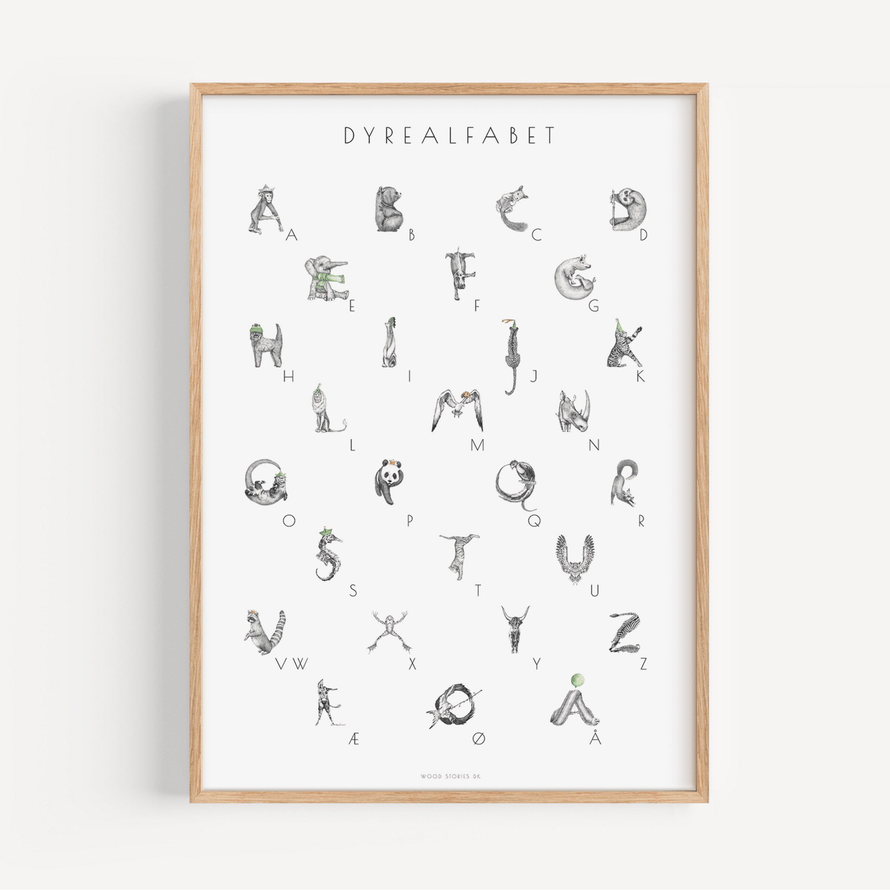 ALFABETPLAKAT - ALFABETDYR illustration til børneværelse - WOOD STORIES DK