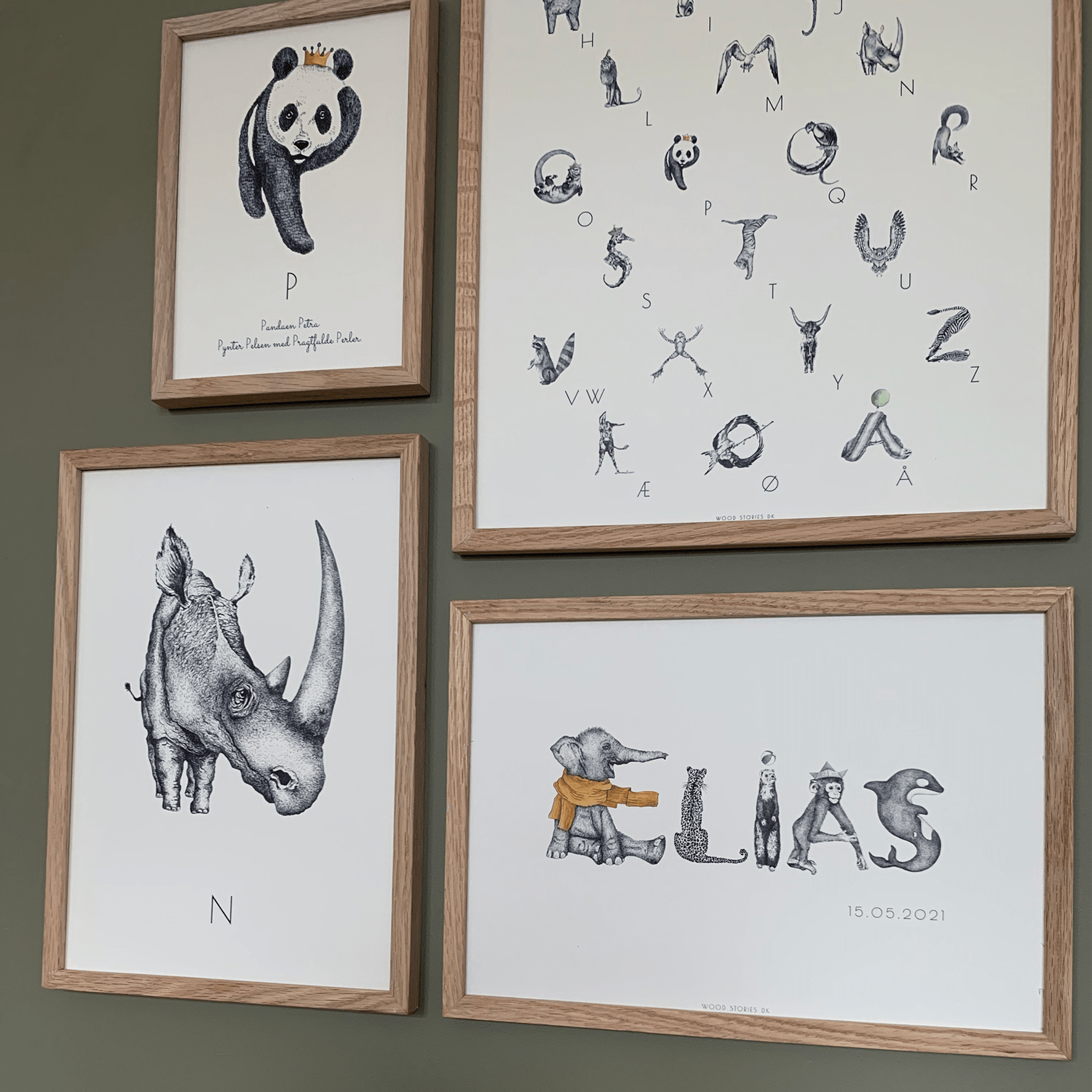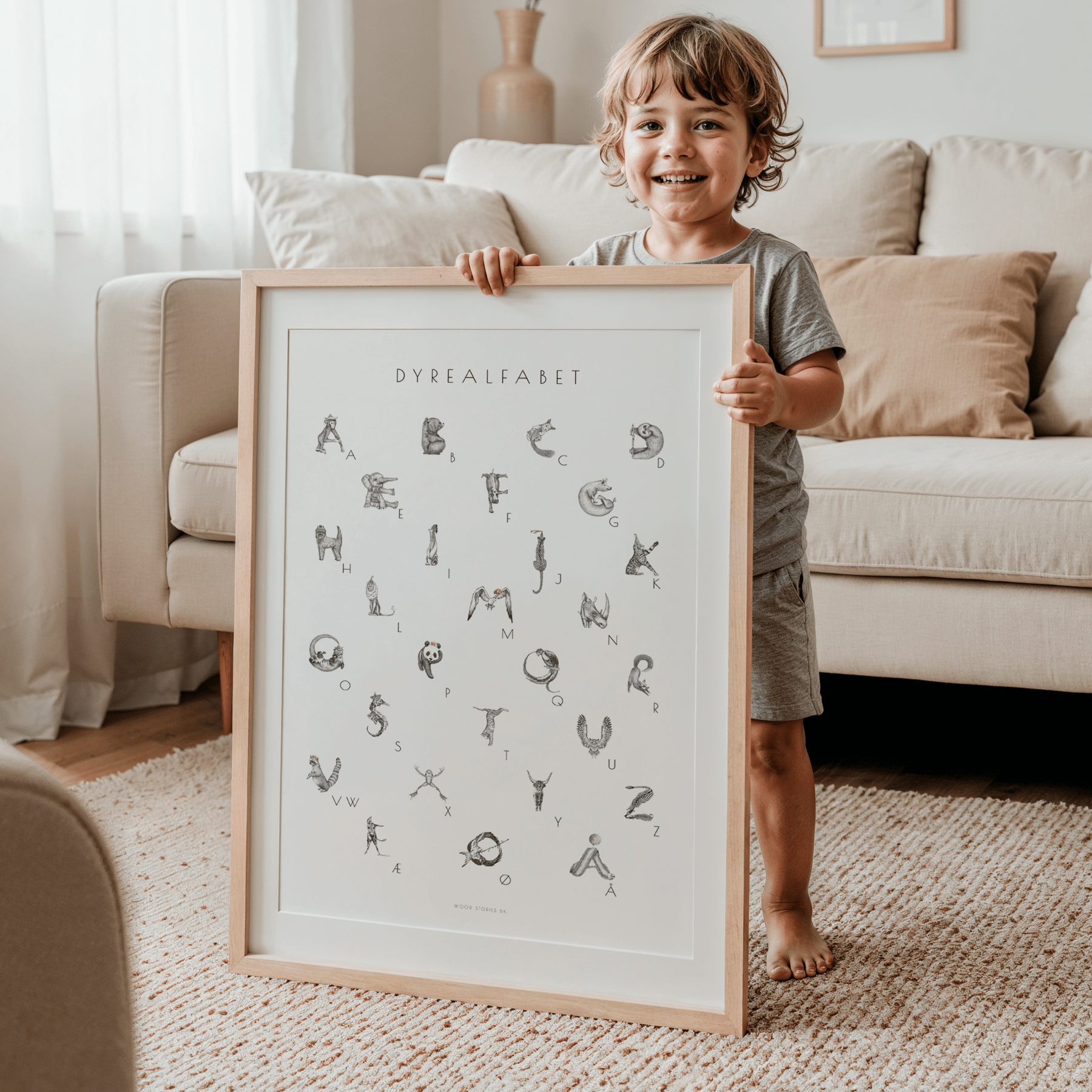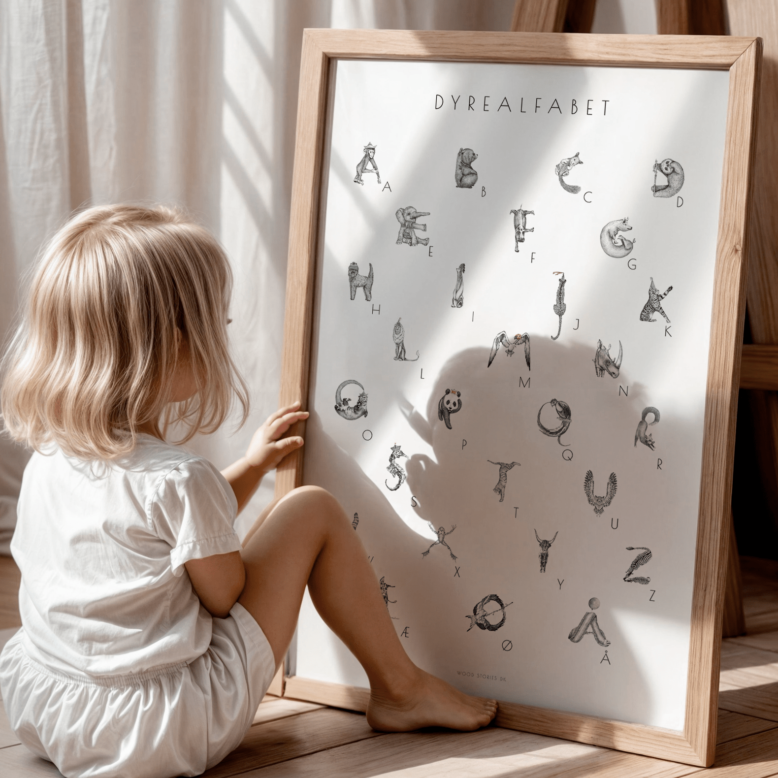 ALFABETPLAKAT - ALFABETDYR illustration til børneværelse - WOOD STORIES DK