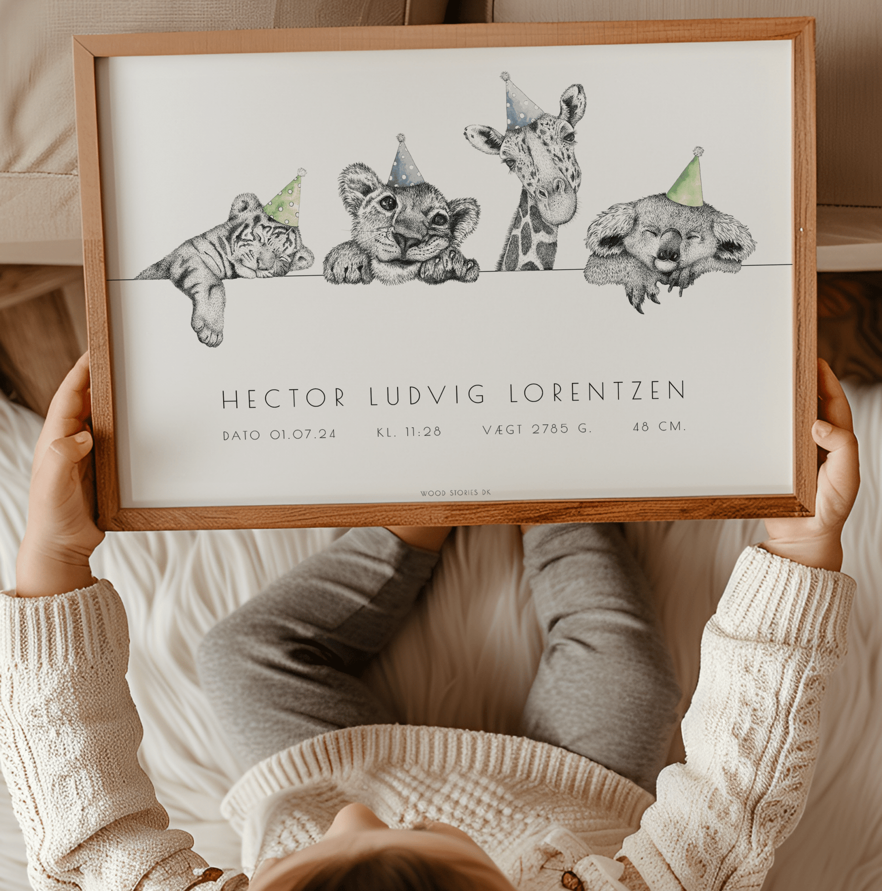 Hvis du køber et standardprodukt uden personlig tekst inden kl. 12 på hverdage, bliver din ordre afsendt samme dag. Ellers sender vi den næste hverdag. Køber du en navneplakat, en fødselsplakat eller et andet produkt med personlig tekst, vil designproces plus tryk af plakat normalvis tage 3-4 hverdage. Køber du et standardprodukt sammen med et personligt produkt, afsender vi den samlede ordre, når det personlige produkt er færdigt.